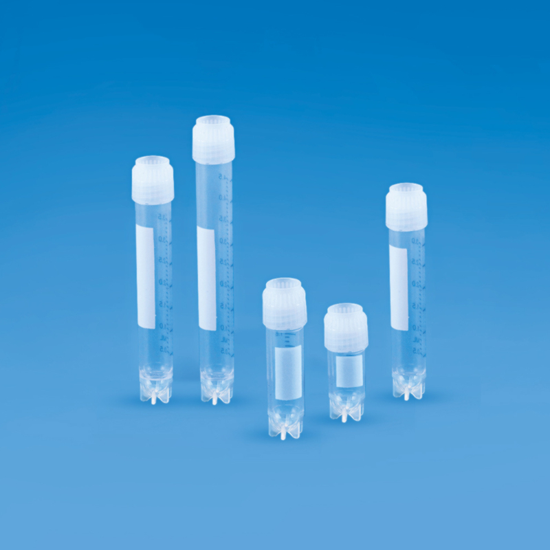 Filettatura Interna.Con forma a stella nel tappo a vite, per capsulatrici/decapsulatrici automatiche.Resistenti a temperature fino a -196°C.Con area di scrittura, linea di riempimento e graduazioni stampate sul vials.Utilizzo semplice e sicuro di materiali biotecnologici.Bar-code stampato su ogni pr
