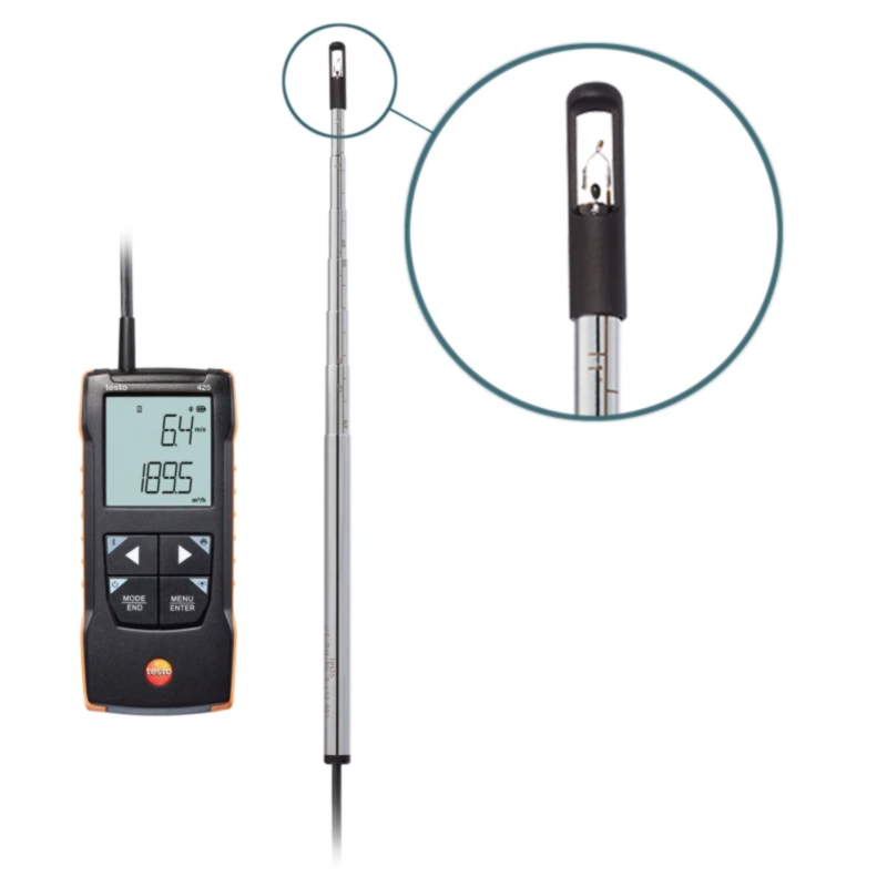 L'anemometro compatto a filo caldo testo 425, dotato di sonda telescopica, è ideale per determinare in modo semplice, rapido e preciso la velocità dell'aria e la portata nei condottidi ventilazione degli impianti di climatizzazione e ventilazione.Il collegamento con la testo Smart App permette di co