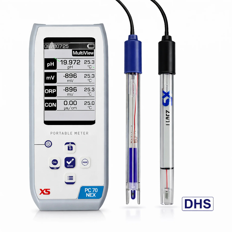 Multiparametro XS Portatile - PC 70 NEX - con Elettrodo pH 201T DHS Cella di Conducibilità 2301T con Sensori di Temperatura Integrati