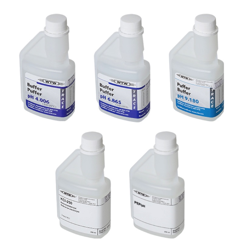 Kit Soluzioni WTW - SORT/K il Kit comprende - 1x pH 4,006 - 1x pH 6,865 - 1x pH 9,180 - 1x Pepsina - 1x KCL